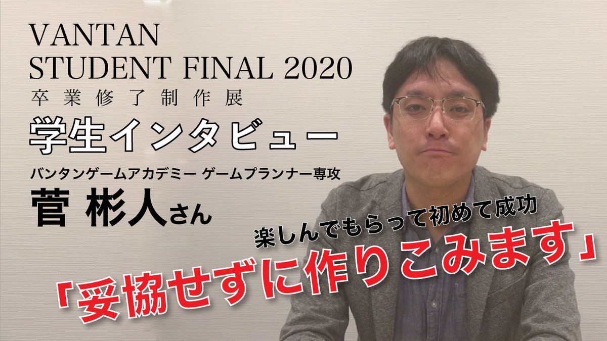 バンタンゲームアカデミー、ゲーム作品出展コンテンツの学生ディレクター、菅 彬人さんのインタビューを公開しました! ぜひご覧ください★ https://youtu.be/XiHJQAdC0aE