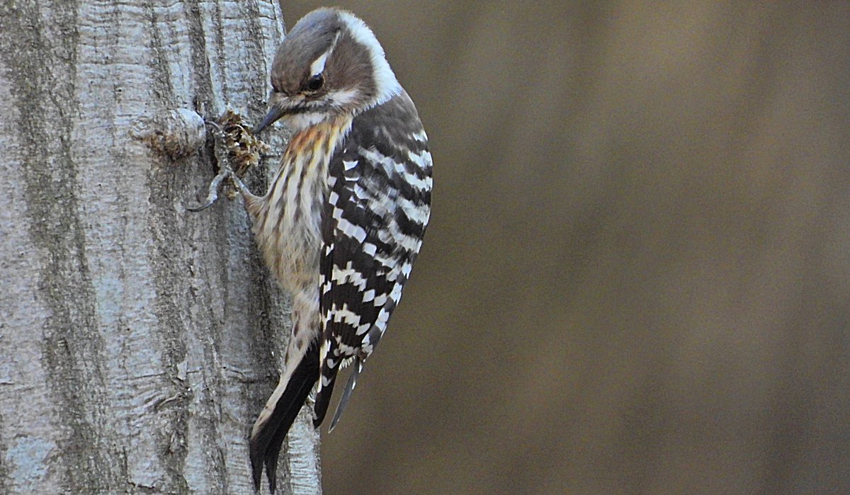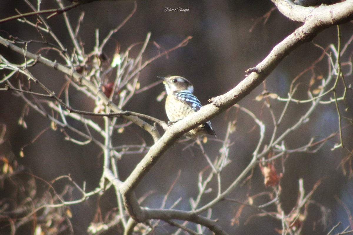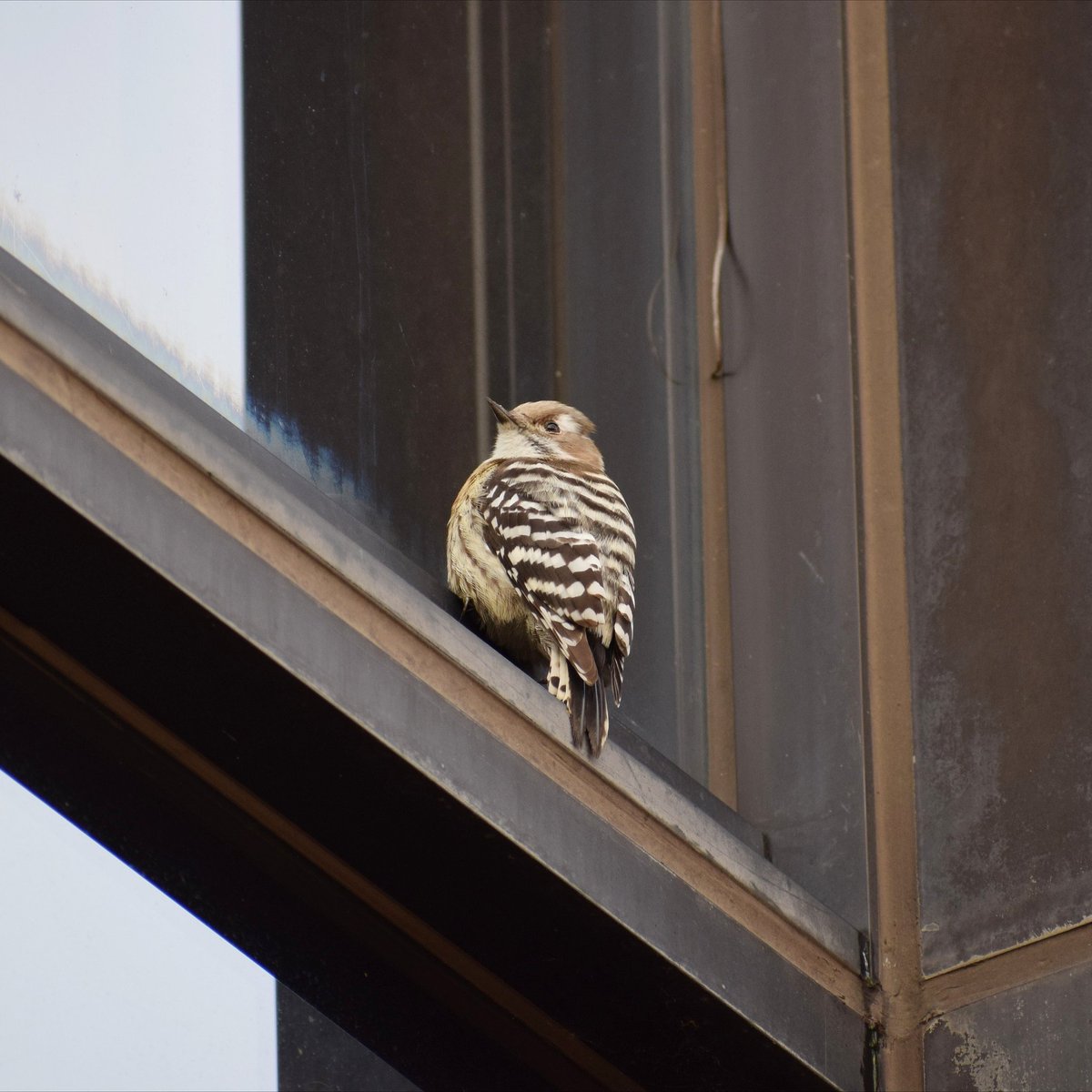 木の上にいたコゲラちゃん(たぶん)。キツツキ科なので思いっきり木をコンコンコンってつついてた笑