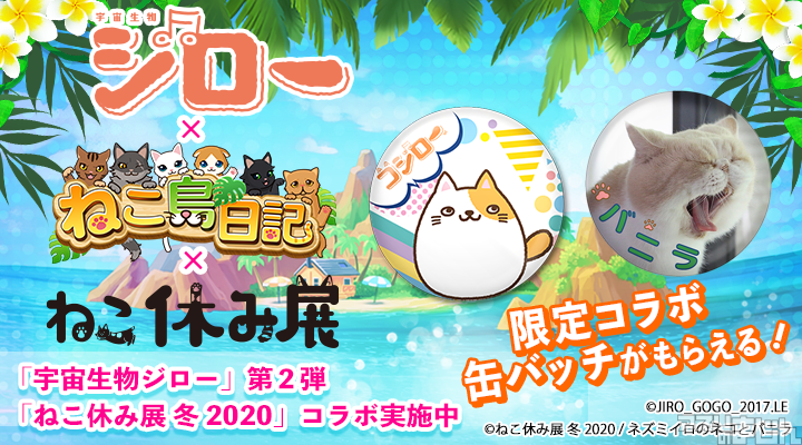 #ねこ島日記#宇宙生物ジロー#ねこ休み展#ねこ休み展2020#コラボキャンペーン#アプリ#パズルhttps://twitter.com/appmajin/status/1222472587852177408 …
