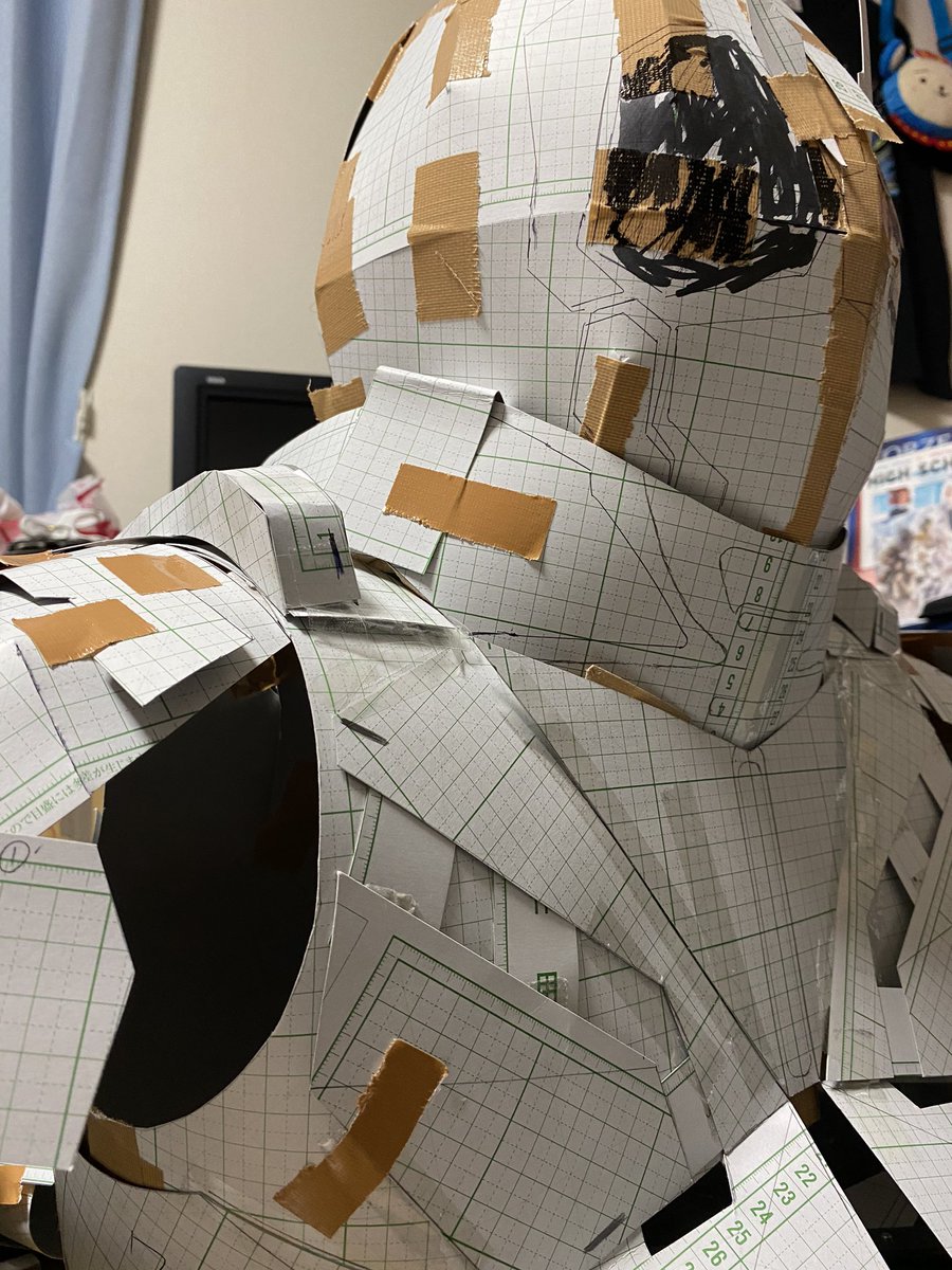 マスク型紙お絵かきしつつ、パーツの型紙をさっさか作る で、アンテナつけてみた うーん、、、、、、、、、顔の大きさはよさげなんだけど、、、 これ、1型か???