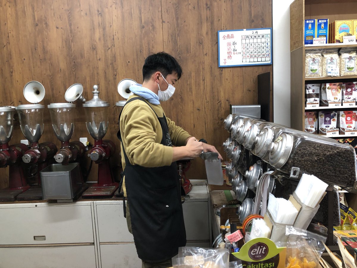 アジア商会さんで、コーヒーのお豆さんを買いに来ました。今日はフレンチ200gです。 私は家で挽くので、いつもお豆さんのままで持ち帰ります。