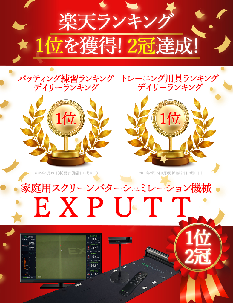 自宅で簡単に本格パター練習ができるEXPUTTが ランキング1位2冠を達成しました