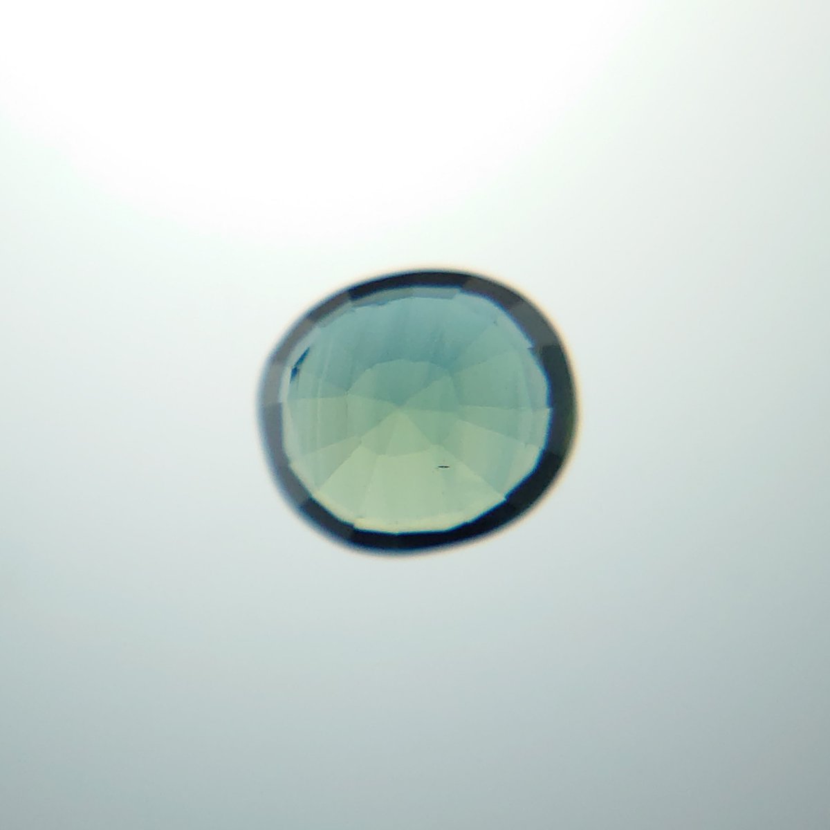 産地不明サファイア。 これもこの間のと同様、多色性が分かりやすい。 深い青色と、灰色味のある緑色が見えます。 2、3枚目は偏光フィルターで撮ったもの。