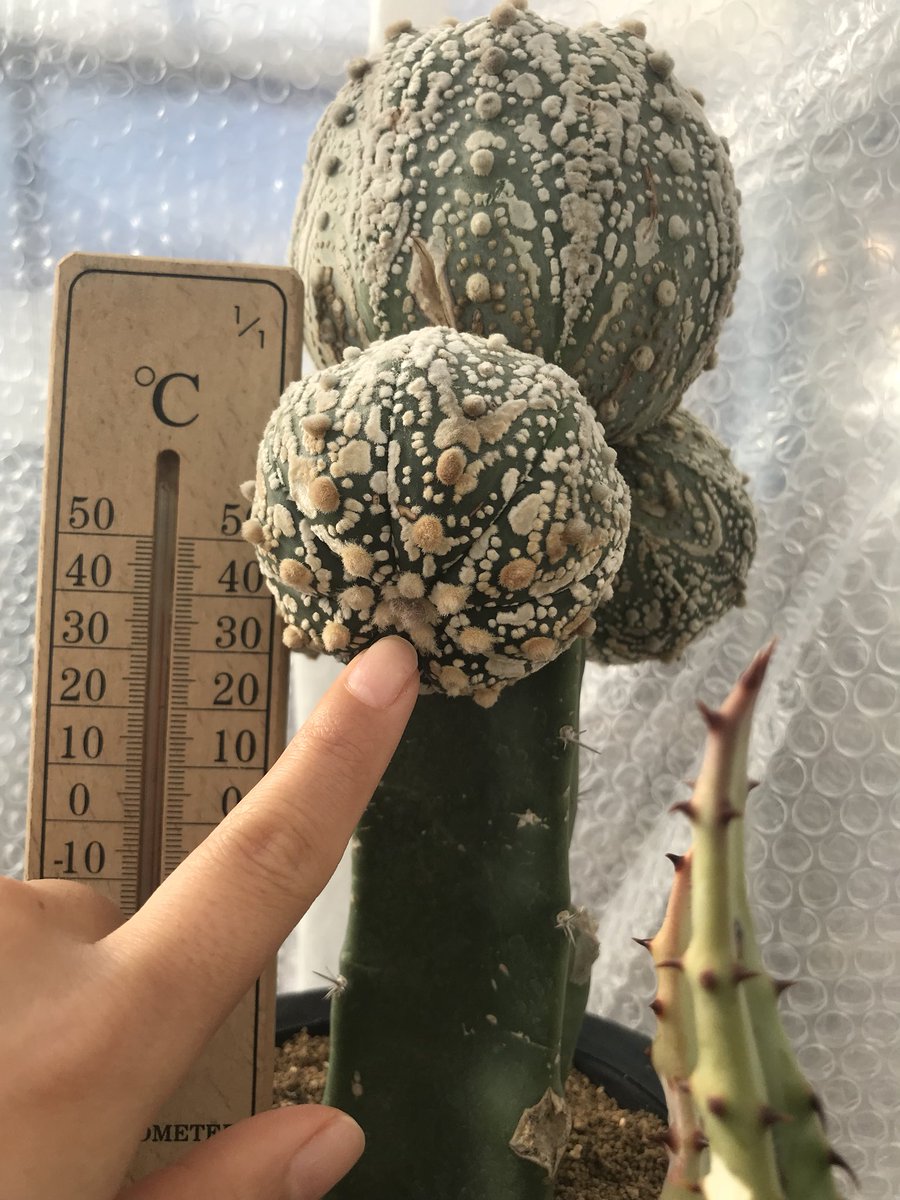 蝦サボの草太郎からなんか出てきた! 仔吹き?花芽? 花だったら、うちの蝦達の中じゃ開花一番乗りだな 右隣の刺座も少し膨らんでるから、ここからも出てくるかも 楽しみ! 蝦達、冬は完全水断ちしてるのでみんなシワッシワ 可哀想だけど、この方が花付き良くなるらしいから耐えてもらうw