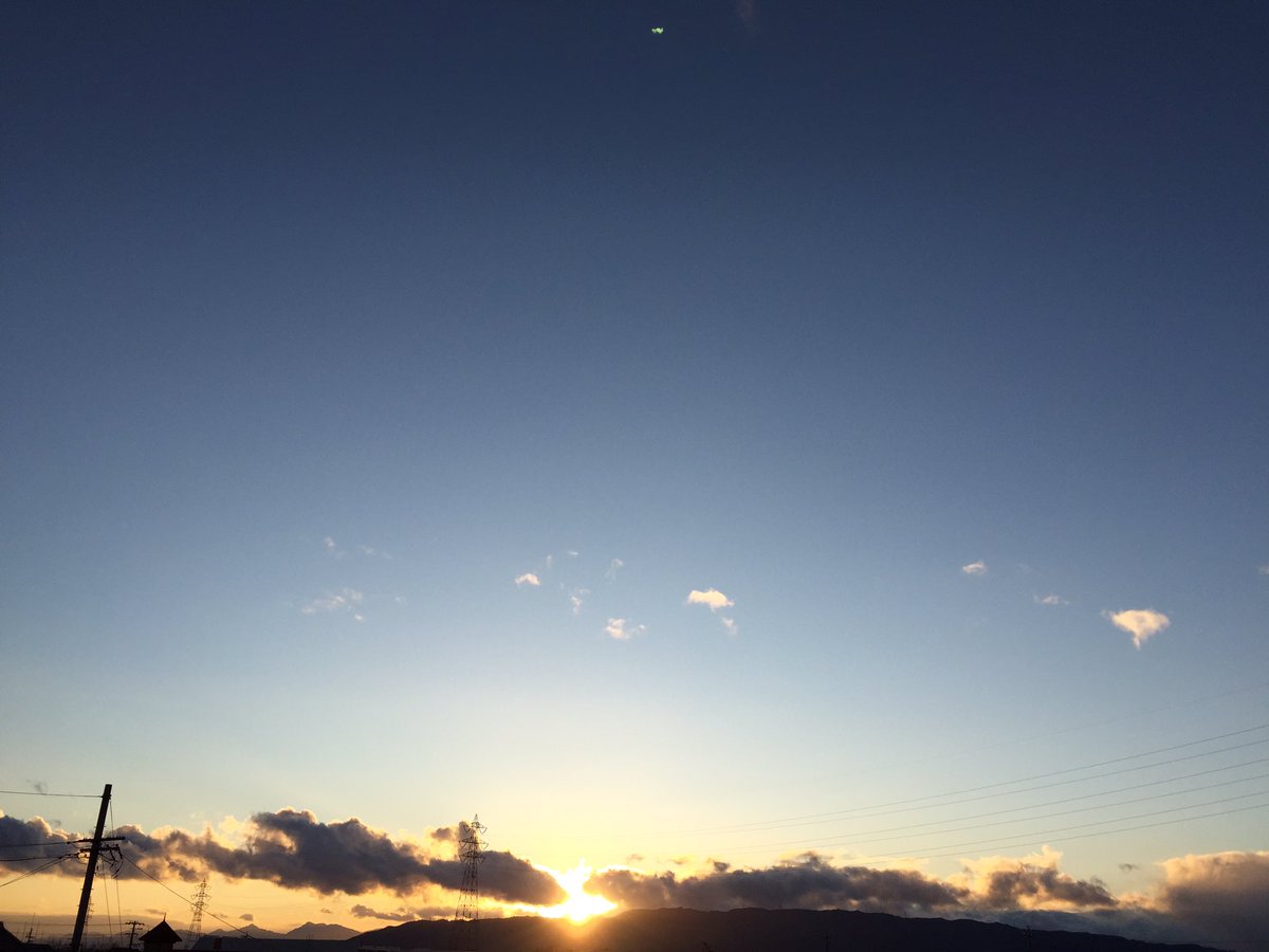 おはようございます いい感じに焼けた空を 早起きカラスたちが 活動場所を求めて 飛んで行きます そして日の出