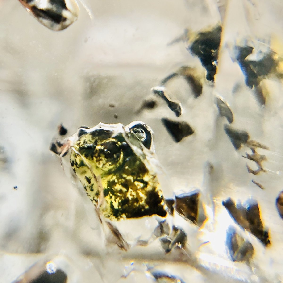 オイルインクォーツ原石リング オイルの蛍光とか、中の気泡とか撮り直してみた