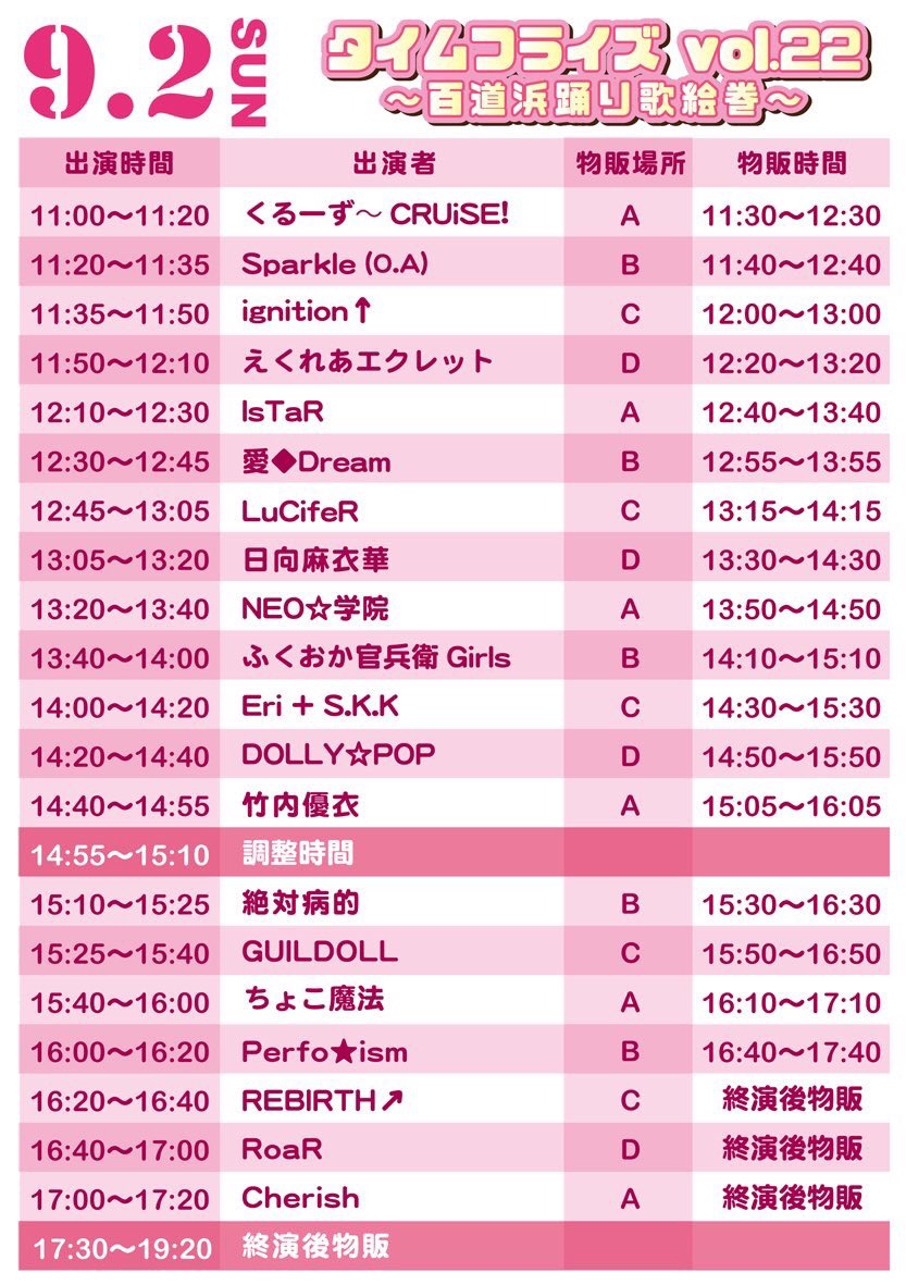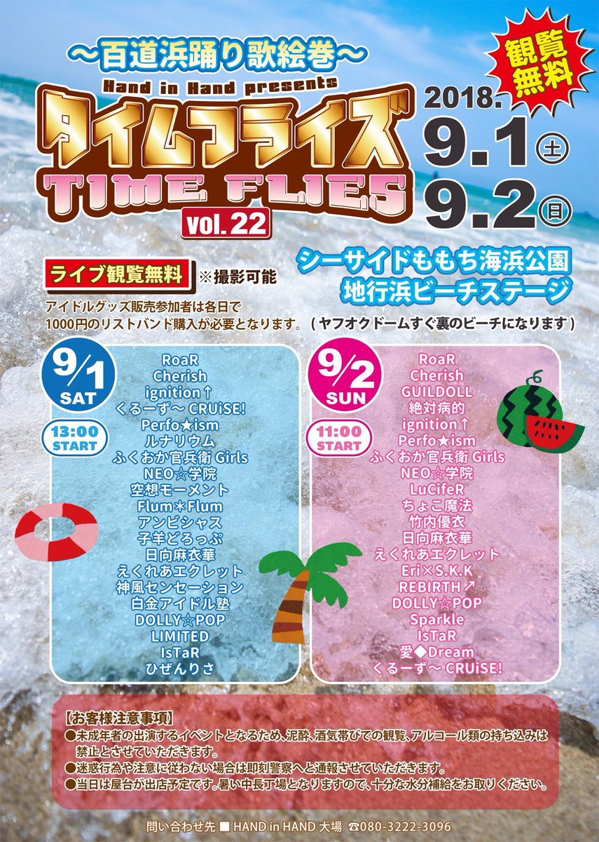 #タイムフライズ#シーサイドももち海浜公園 出演*17:00〜 物販*終演後物販 pic.twitter.com/yc6155CxIh