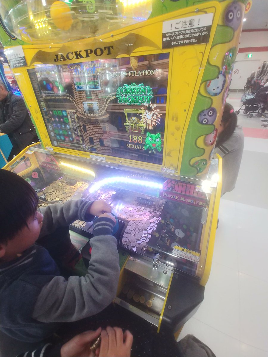子供達とお出掛け(>_<) なんかメダルゲーでくまちゃんがジャックポット当ててたんやけど( ̄▽ ̄;)初めて見た(>_<)