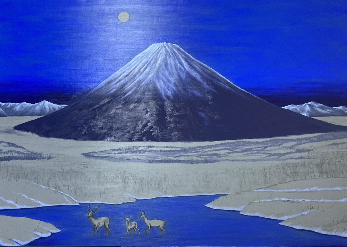 #oilpainting#油彩画#北海道#蝦夷富士#羊蹄山#100号#雪だるま