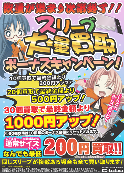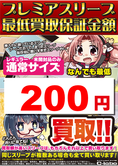 高ラボでは現在「Fate」「Reゼロ」「とらぶる」のスリーブを500円買取保証中! お手元に余っているスリーブがありましたらぜひぜひお持ち込み下さい(*´∀`*)