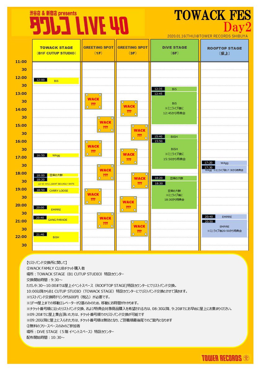【本日】 1/16(木)『TOWACK FES-day2-』 10:00~ グッズ販売 @ 屋上イベントスペース 12:00~ LiVE@ TOWACK STAGE(CUTUP STUDIO) 12:35~ LiVE@ DiVE STAGE(5F) ※雨天の場合中止の可能性あり ※チケットリストバンドorフリーリストバンド必須