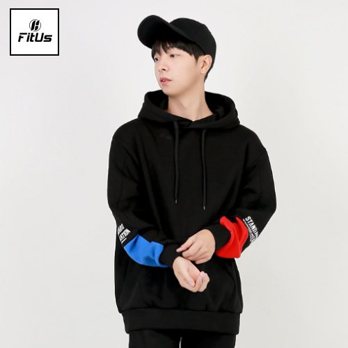 袖配色ロゴフードパーカー 【fitus 楽天市場】 トップス スウェット トレーナー 長袖