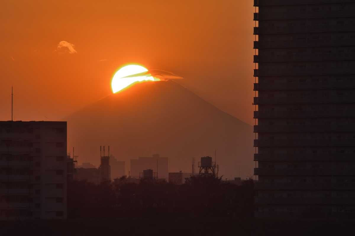 昨年、朝日新聞で紹介された、傘雲がかかったダイヤモンド富士の日、荒川河川敷でじじいが撮った画像を、今日、明日でupします。