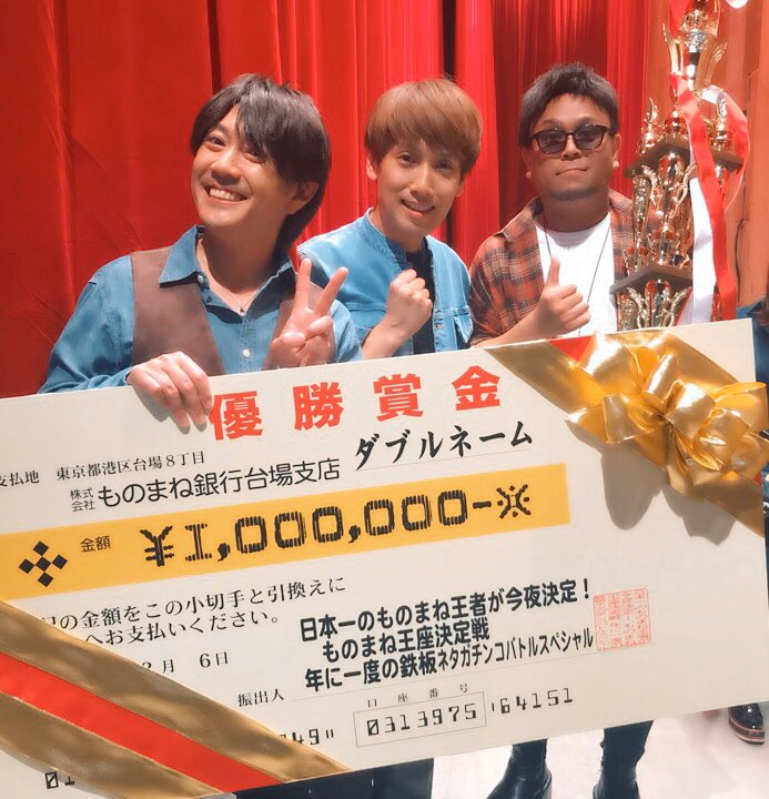 #ものまね王座決定戦 観てくださったみなさんありがとうございました。 ダブルネームのお二人優勝おめでとう♪#ダブルネーム pic.twitter.com/mFMFEhz6X0