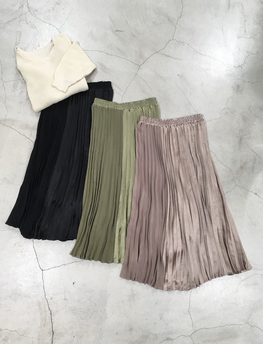 艶ありのサテン地と、つや消しとが切り替えになったオシャレなプリーツスカート
