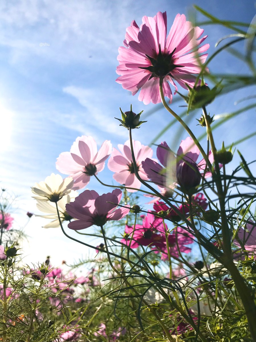 去年の二度の台風に打たれ吹かれても立ち上がるコスモスの強さ。見習わないと。