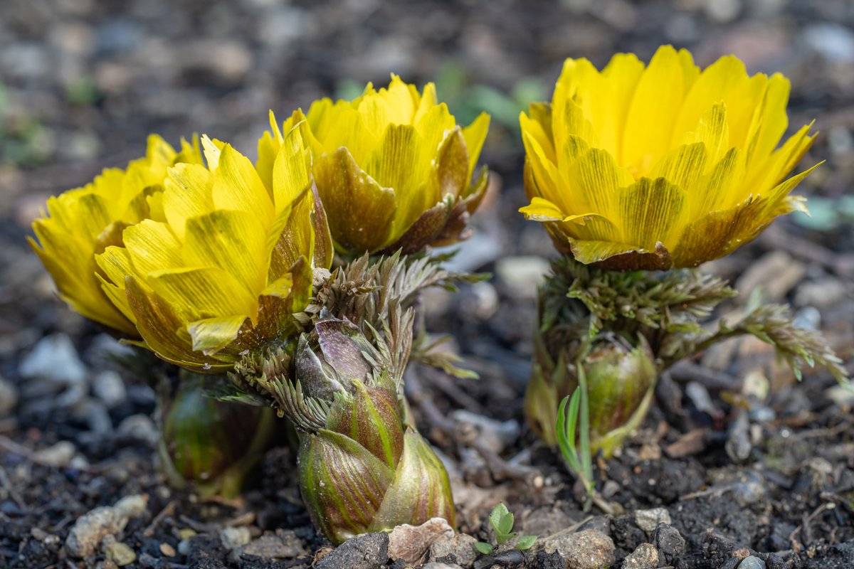 フクジュソウ Far East Amur adonis 河川環境楽園にて。タラの芽みたいなあの部分に、強烈に引かれました。 SONY α7Ⅲ Carl Zeiss Makro-Planar T* 2/50 ZE f/8、1/30sec、ISO-250、WB-5700K