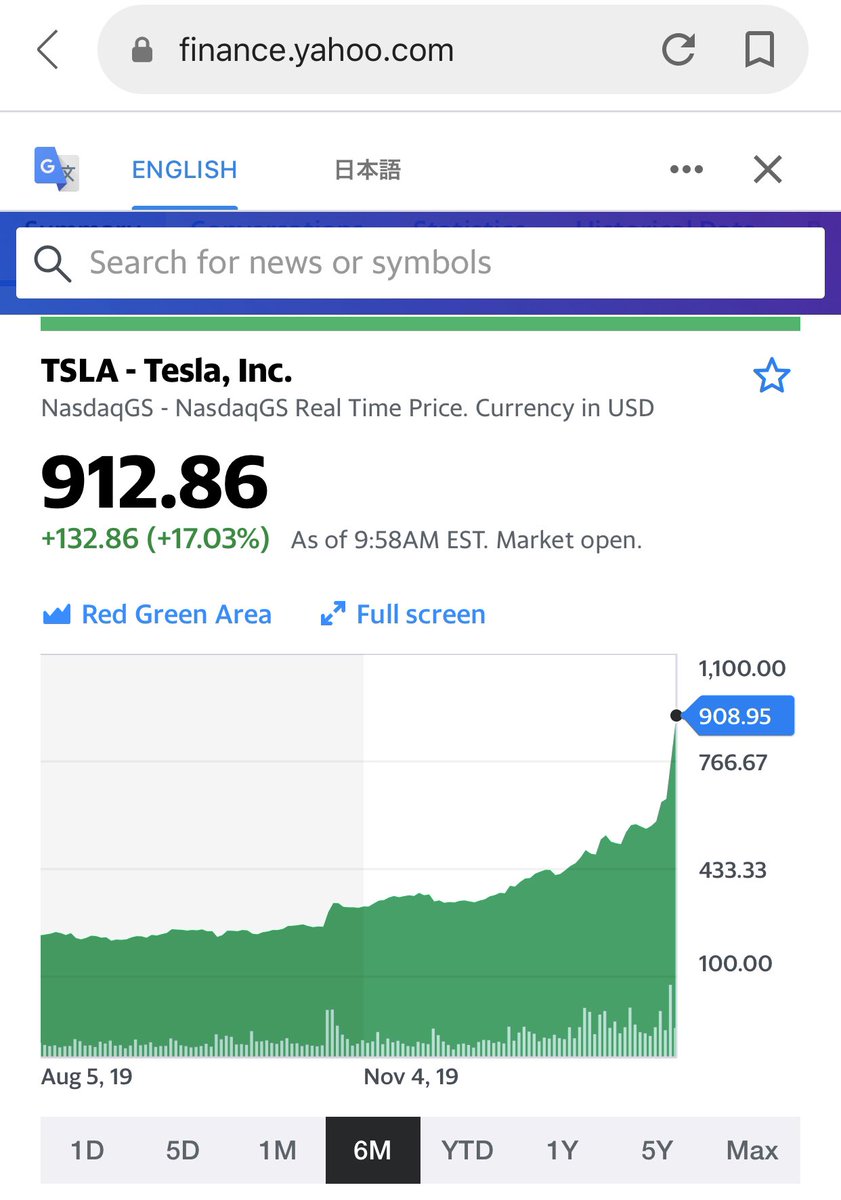一か月ほど前に、車好きとしてテスラ株をちょっと買おうと思って株価チェックしたら一株400ドル程度 様子見していたら900超え 買うかどうか難しい そこでとりあえず2株20万相当を買ってみることにした 下がったらちょっとずつ買いまして行く予定