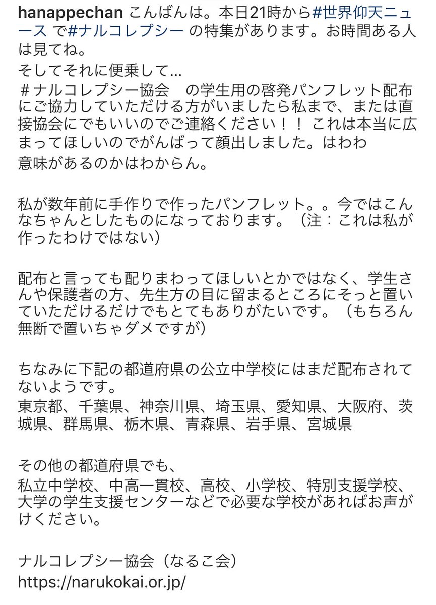 いよいよ明日! 1月28日(火)21:00~放送 日本テレビ「ザ!世界仰天ニュース」 こちらの番組にてナルコレプシーについて取材して頂きました。 私も出てるので良かったら見てください