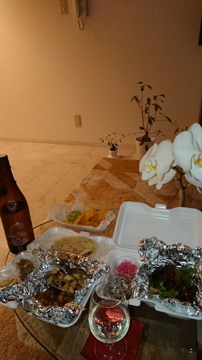 写真は昨日のテイクアウトしたメキシコ料理と新政No.6のR-typeエッセンス。