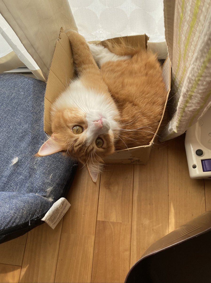 見て!入ったよ!って自慢げだけど 箱裂けてますよー