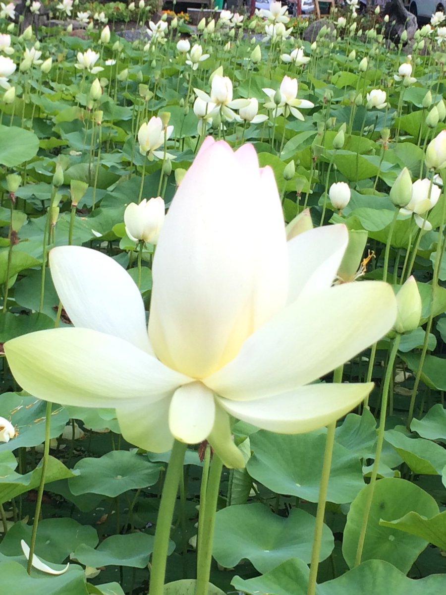 咲き始めから徐々に色や開き方が変化していく品種や、古代から続く品種などがハス池に咲き誇っています!