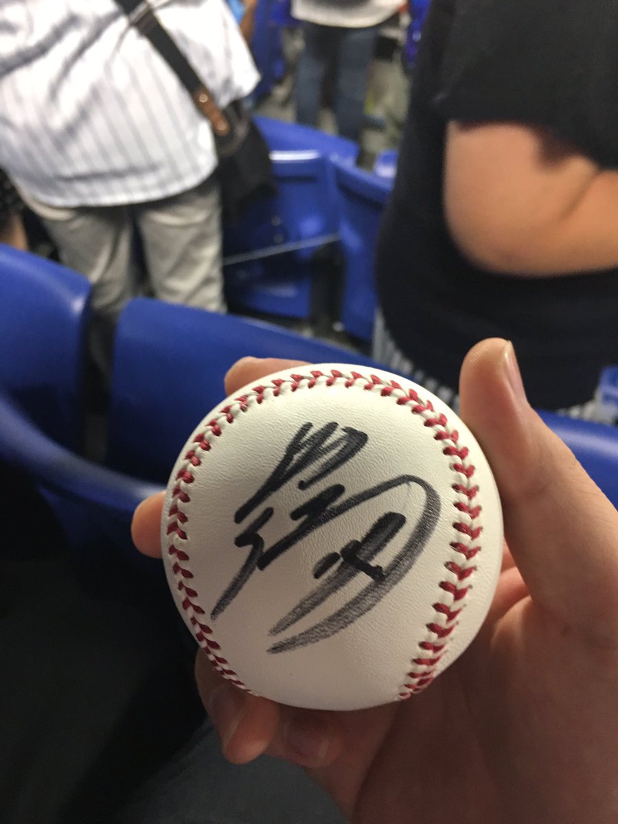 今日、いや昨日のヤクルト戦でラッキーな事にサインボールが後ろから足元に転がって来た!
