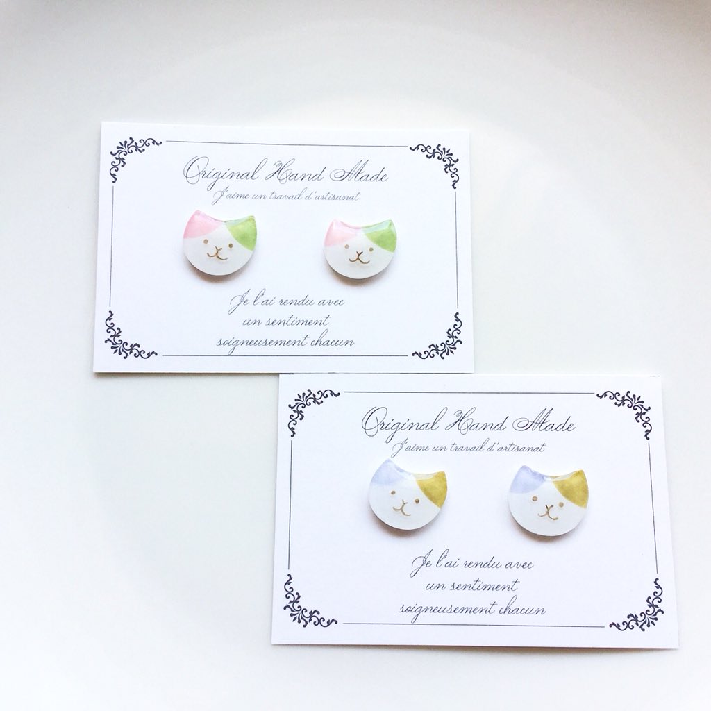 バイカラーのお耳がおしゃれな猫のピアス/イヤリング☆ コロンとした可愛いらしいフォルムです♫ よろしければご覧ください(*´꒳`*) https://minne.com/items/14054409