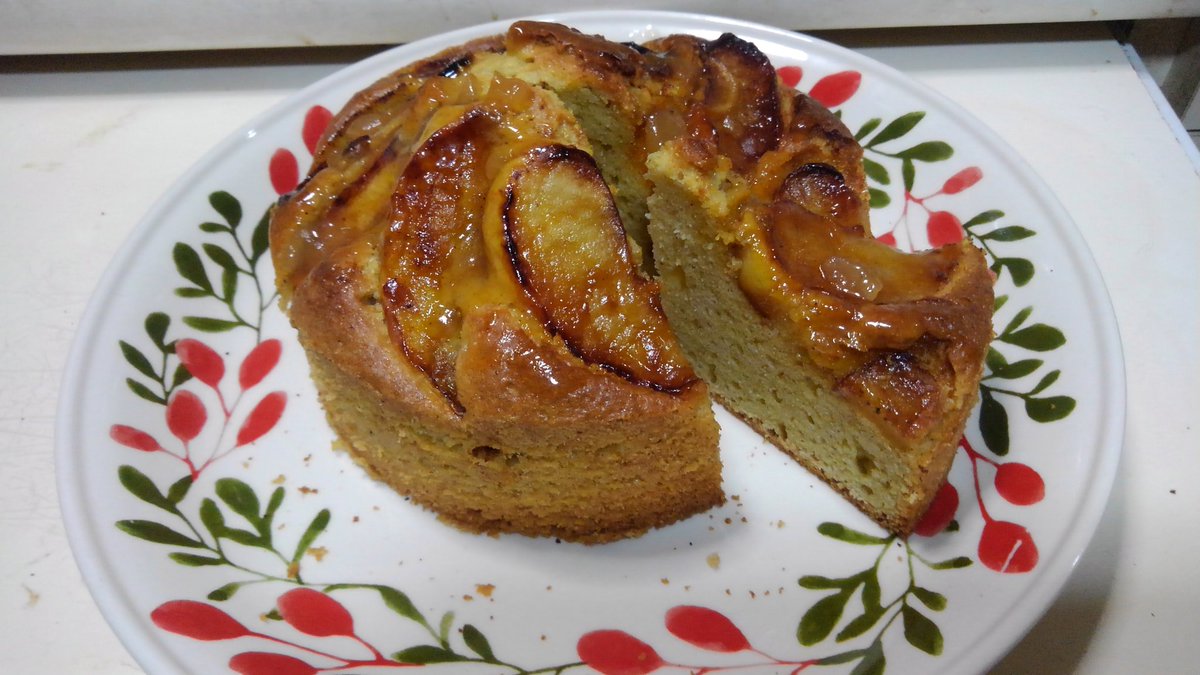 リンゴのケーキ。 余ってるグリュワインを使って スパイスは多めに。