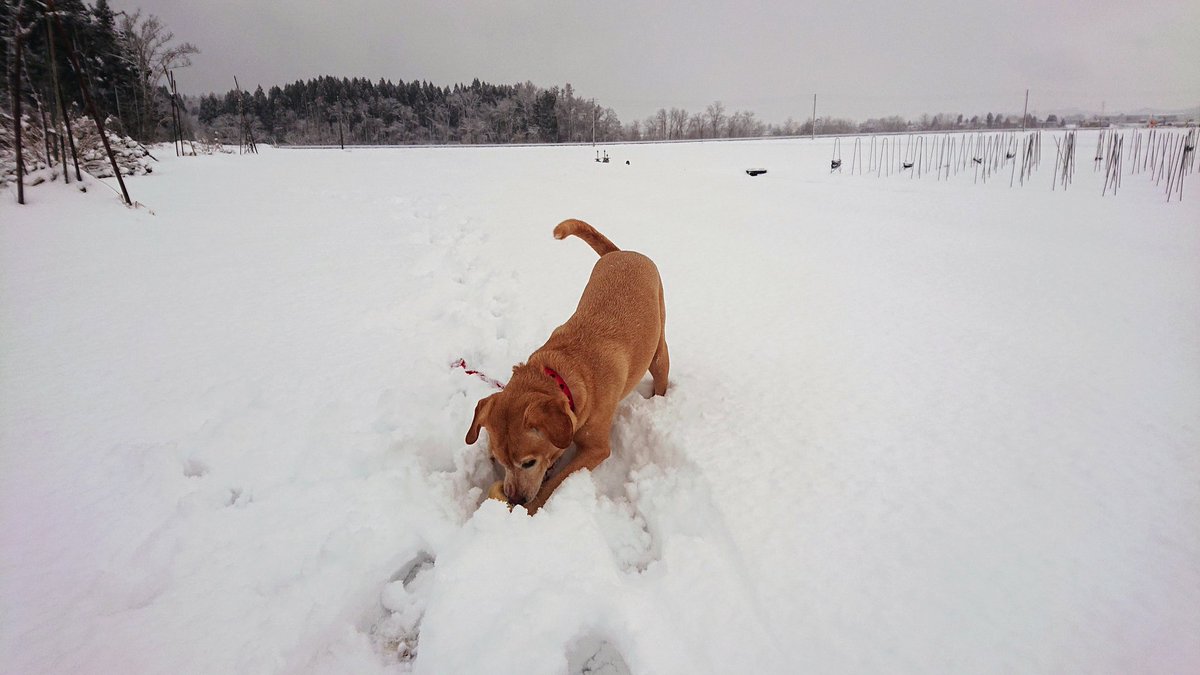 私、雪をこいで何百mも追いかけてクタクタ…コラーッ