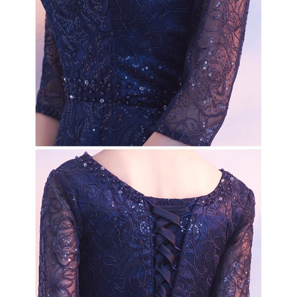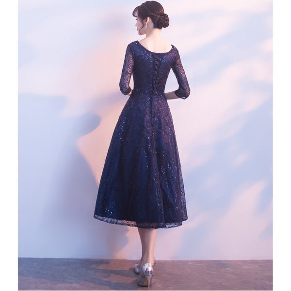 スパンコールがキラキラ綺麗なミモレ丈ドレス♡ 背中のレースアップでかわいらしく