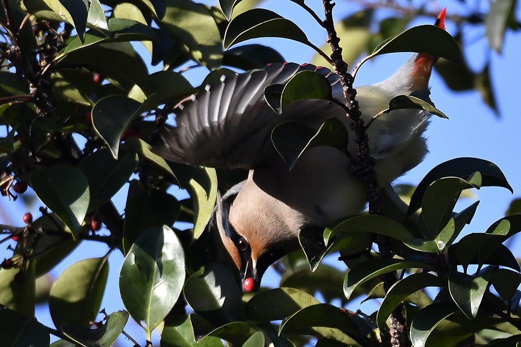 今日はレンジャクの群れを観察してきました。 交通量の多い市街地に姿を見せてくれたのですが、 「よし、信号も変わって車列が途切れた。今だ!」というタイミングよりちょっと遅れて飛んでくるから、食べ始めるとまた車列が近づくという・・・。