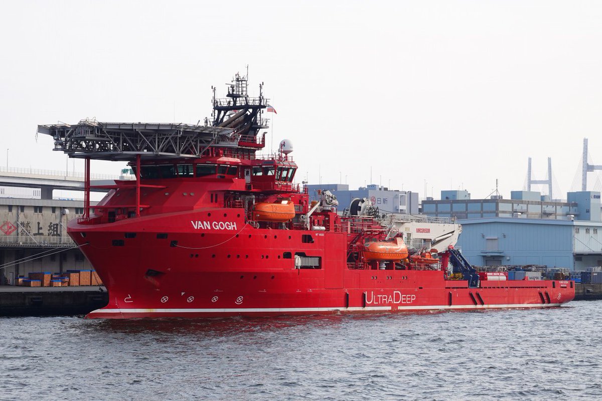 今日は横浜港大黒ふ頭に寄港していたシンガポールUDS社の潜水作業支援船「ファン・ゴッホ」を撮ってきました。 本船は墜落事故の空自F-35戦闘機の捜索で米軍にチャーターされた船。捜索を終えて帰路に着く前に寄ったものと思います。船首サイドスラスターの数!!