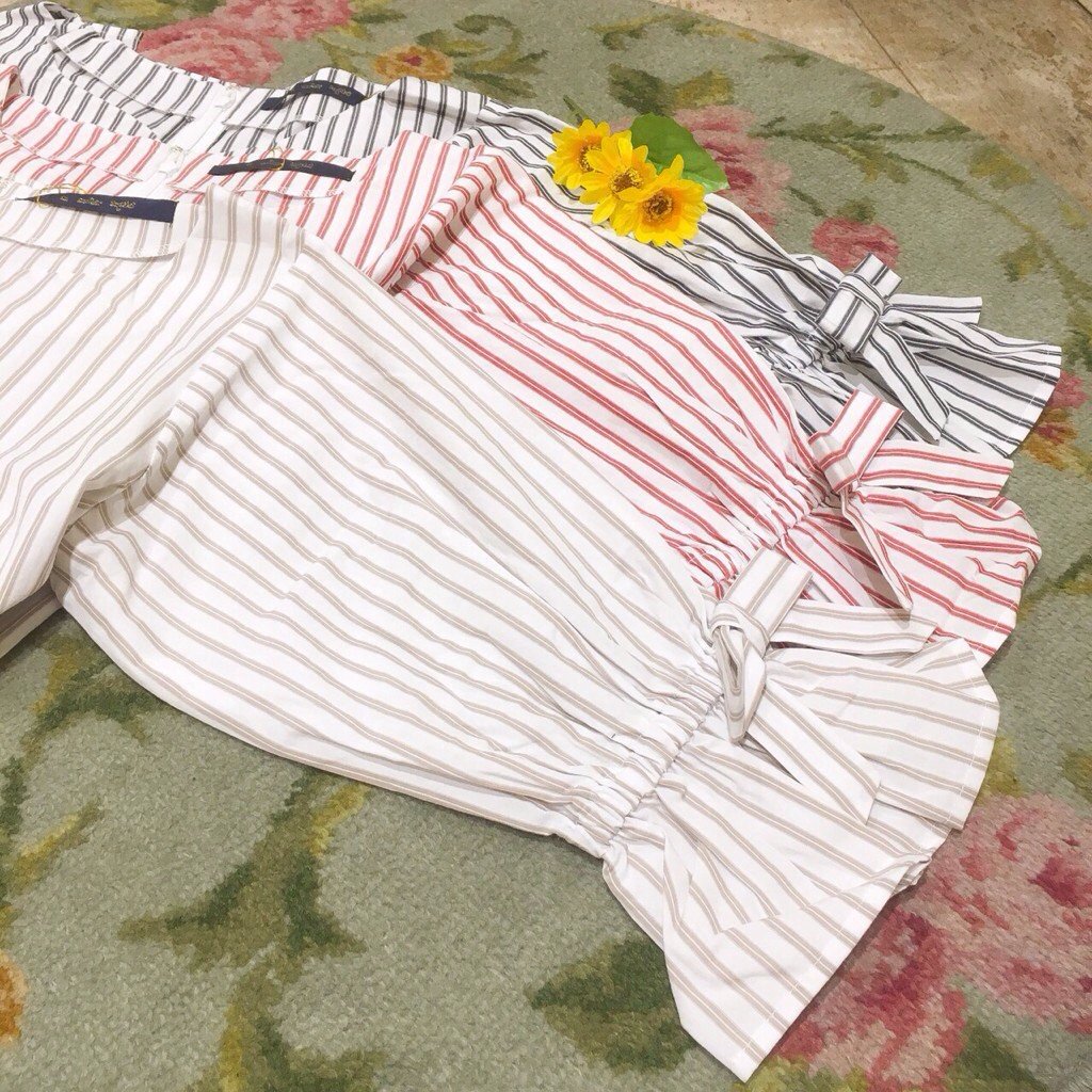 ▶︎袖口リボンストライププルオーバーブラウス