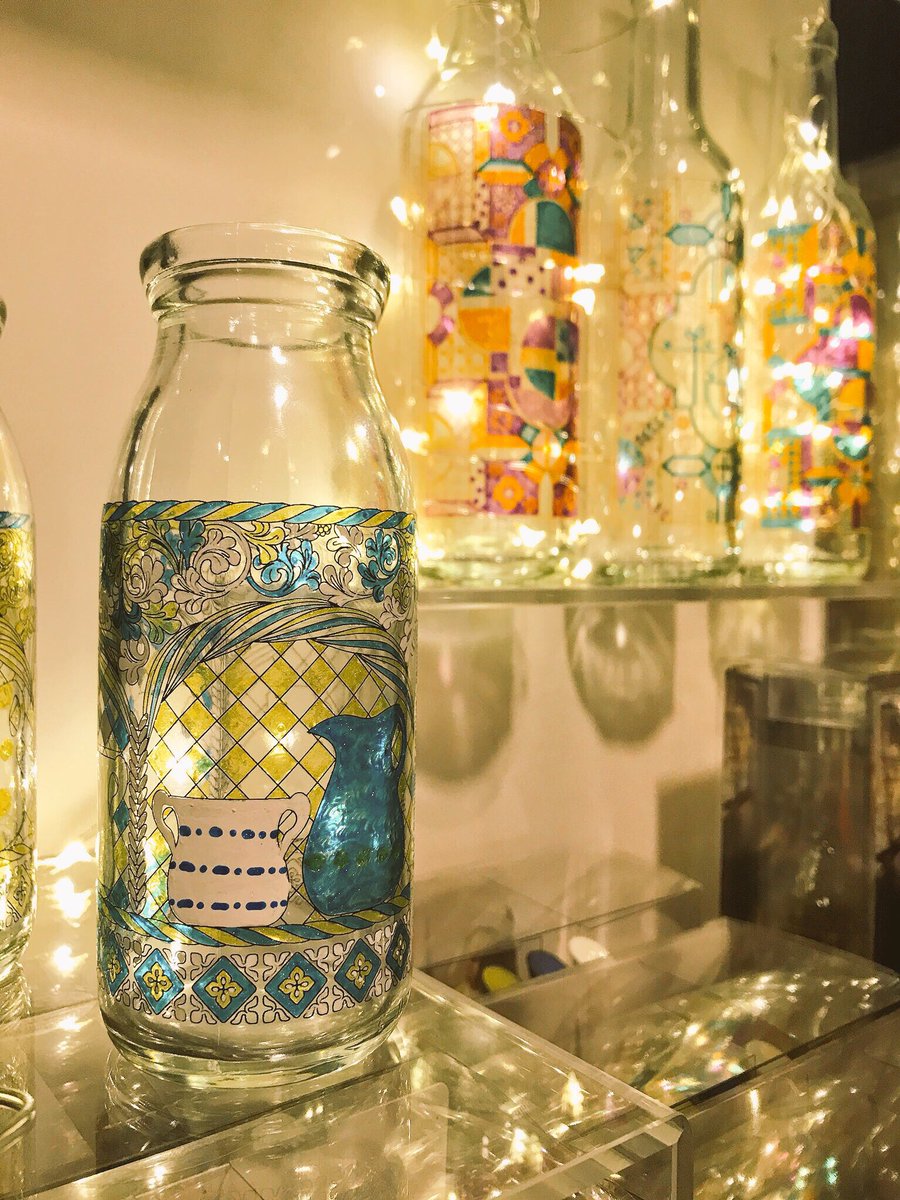 大阪展限定デザイン「手紙を書く女」モチーフの #大人の塗り絵 の#ガラスびん、#コロリアージュボトル も数量限定で残りわずか。 作品のイメージのカラーの#デコレーゼ がセットです。 ぜひフェルメール展の余韻をご自宅でお楽しみくださいね
