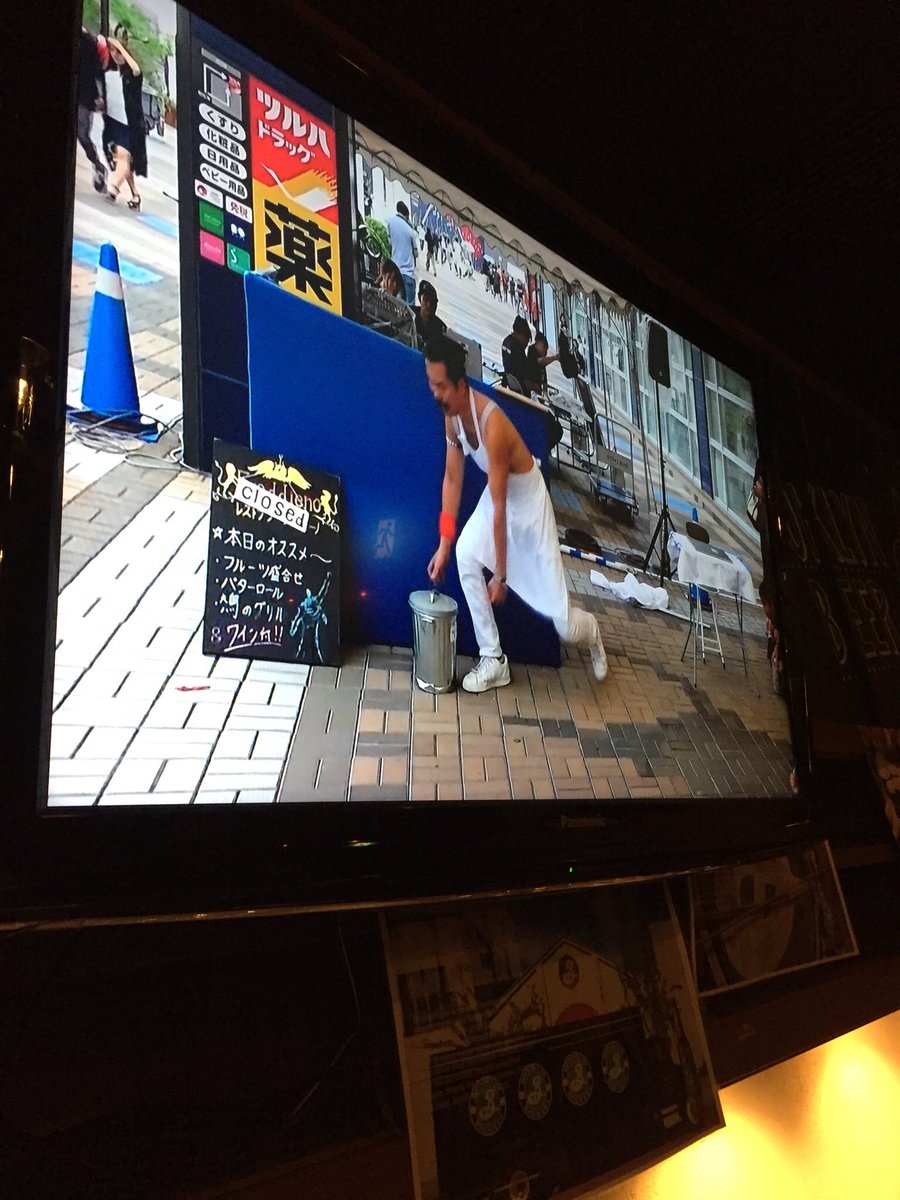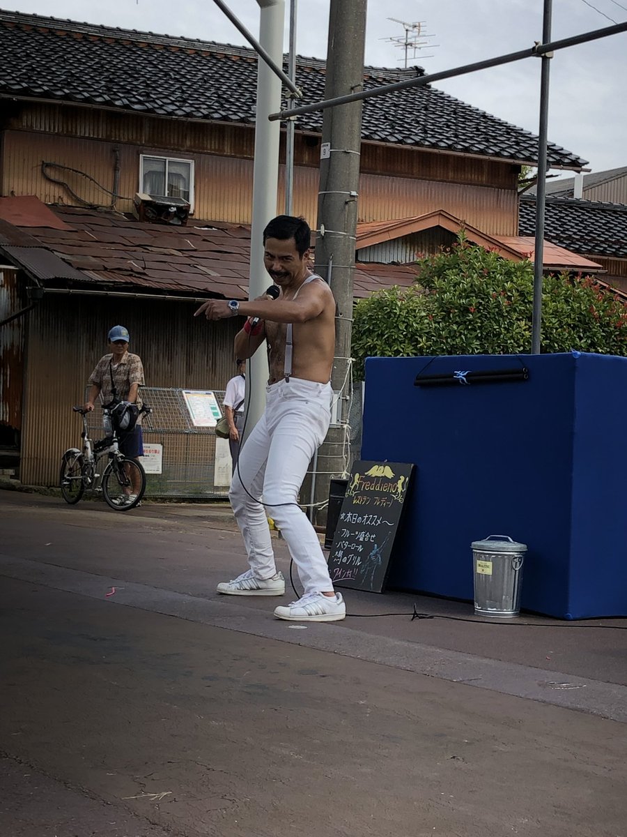#あつぎ国際大道芸2019#フレディーノ#夜会 夜会始まったばかりで、お酒買ってる( *´艸`)証拠写真を撮りに… あっ!見つかった(;゜∇゜) もぅビールが似合うなぁ
