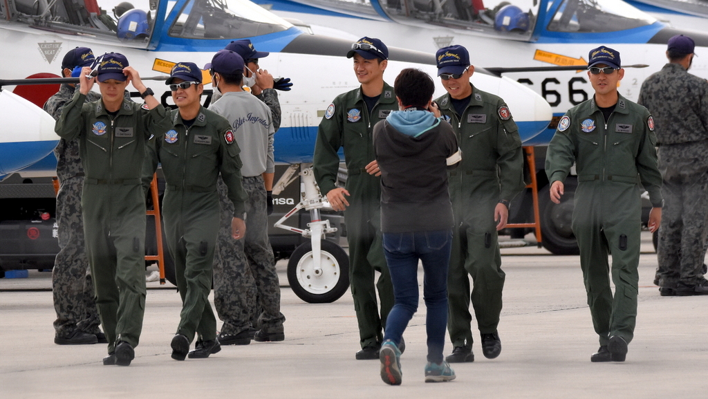 3rdの基地上空訓練のウォークダウン前のパイロットさん…遠渡隊長さん、東島さん、鬼塚さん、永岡さん、河野さん、眞鍋さん。20211019