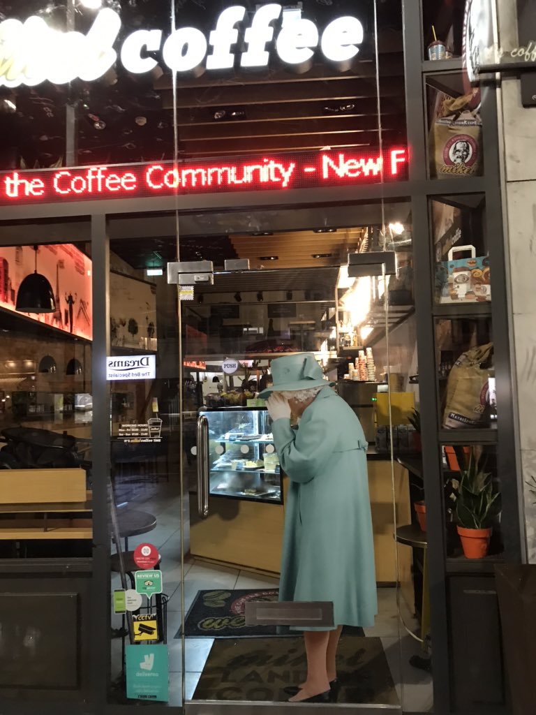 イギリスがブレグジった夜。どこかでパレードが行われていたらしくバスが迂回していた以外は普段通りの金曜日だった。傷心の女王様もお忍びでカフェに来てた。