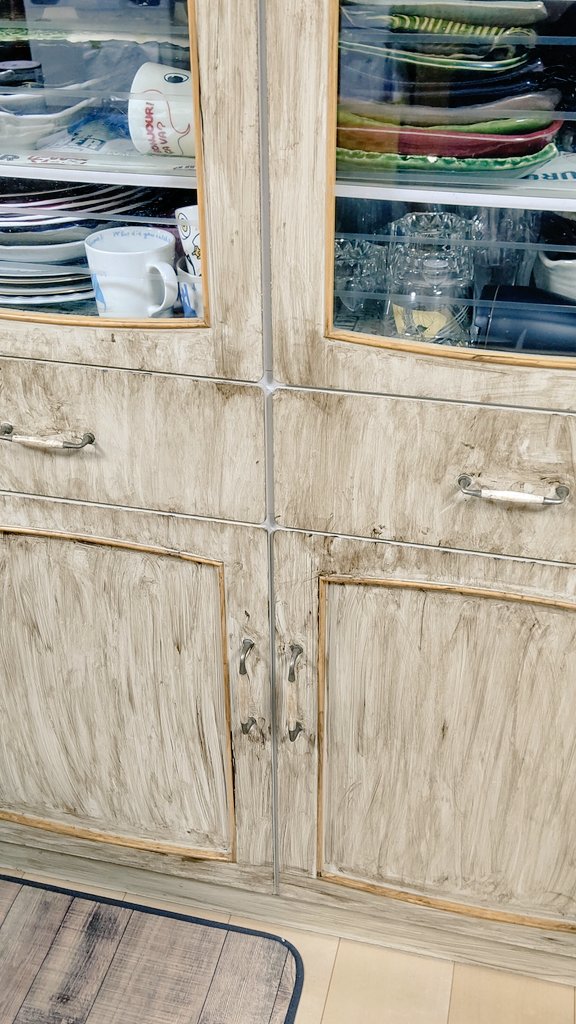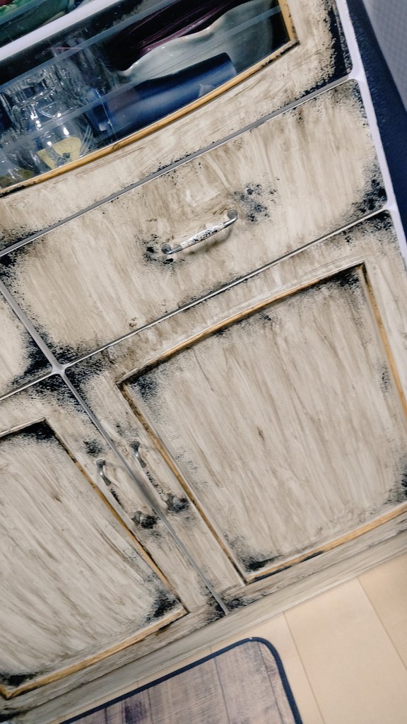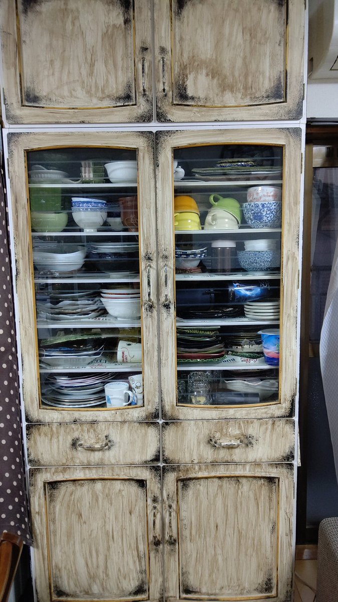 そしてビンテージ加工。 主人にまだなにかやった方がいい?って聞いたら白い縁のところ濃茶色がいいかなと言ったのでまた明日、考えます