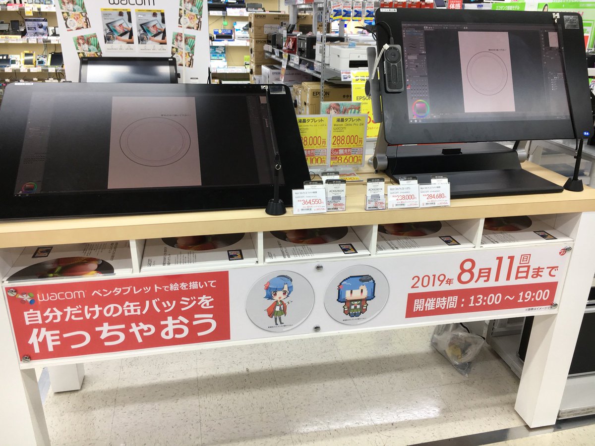 #ペンタブレット お試しいただけます!/#Wacom の最新ペンタブレットで好きな絵や文字を描いて自分だけの#缶バッジ を作ってみませんか? 参加費無料、作った缶バッジはお持ち帰りいただけます! ★8月11日(日) 13:00~19:00 ★4階ペンタブレットコーナーpic.twitter.com/rFj060Jf62