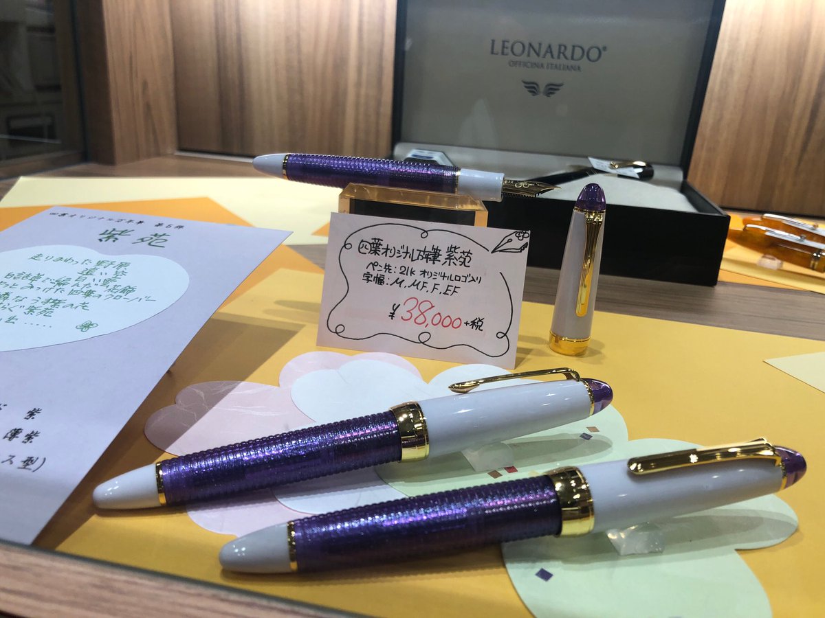 @Penne191@pentonote_bunka オリジナル万年筆がギャザードで綺麗な紫と白の組み合わせでウットリ