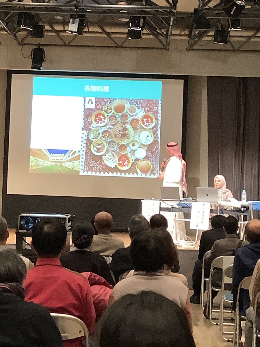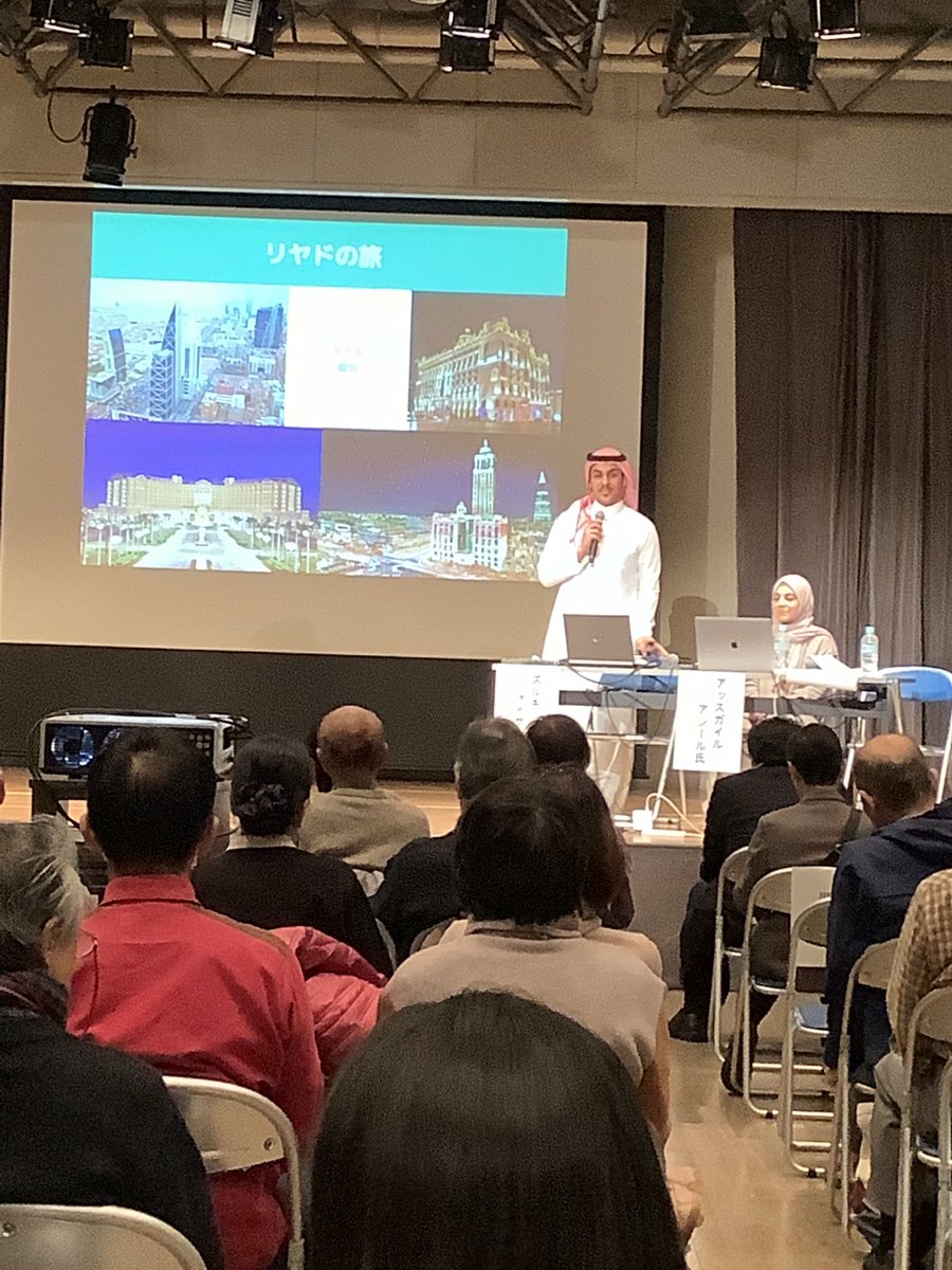 ただ今、講演会開催中です! サウジアラビアの食べ物、ホテル、観光など講演していただいてます。 サウジアラビア旅行の疑似体験してみませんか? 文化会館たづくりむらさきホールでお待ちしてます!