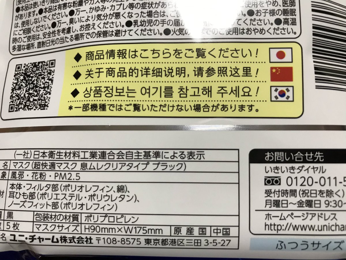 散歩がてら昼飯買いに行ったついでにドラッグストアに寄ったら、マスク少し買えたが…ユニチャームのマスクも中国