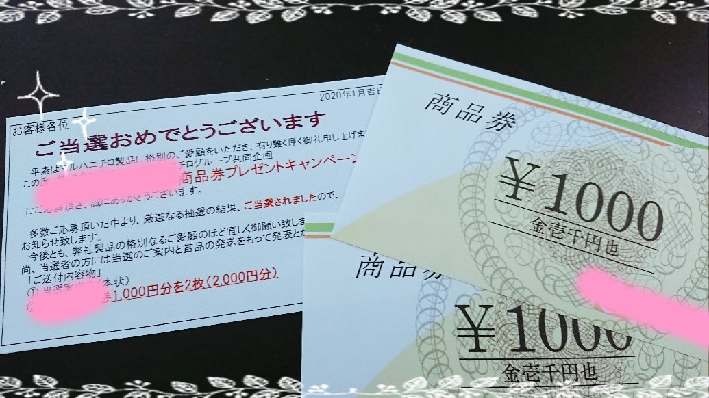 地元スーパー×マルハニチロ様から地元スーパー商品券2000円分が届きましたぁ