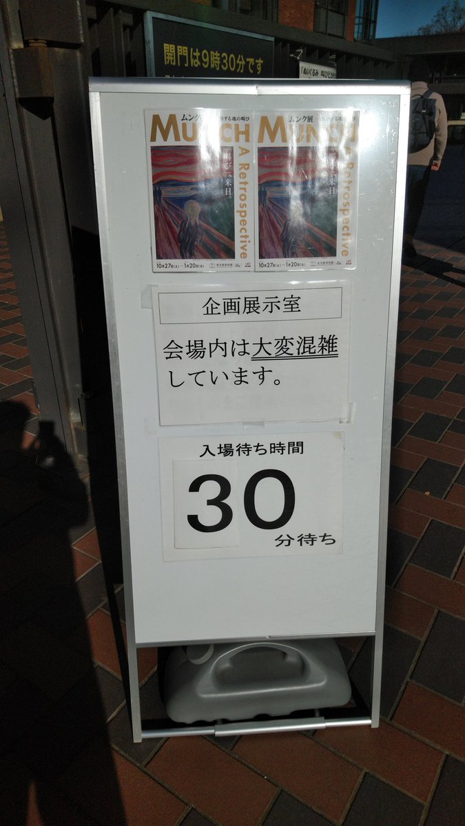 #ムンク#混雑 ムンク展、激混みすぎる さっき30分が50分に、入場待ちが急成長 ロッカーが少なすぎるから、みんな上着、手荷物を持ったまま入場してるしpic.twitter.com/lJmAdcGlUe