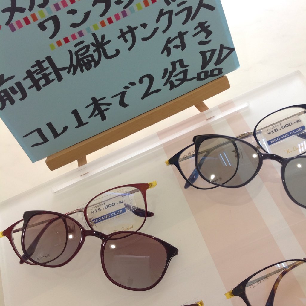 水面の反射や路面の反射などを抑えて見えやすい、偏光サングラス付きのメガネや、外に出るとサングラスになる調光メガネなど1本で2役なメガネ達が大活躍な季節ですね