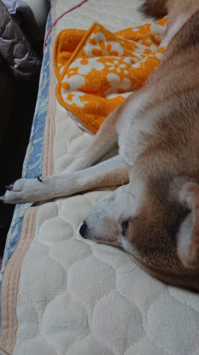 午前中仕事、午後から買い物の予定だったけど、フワフワするめまいがあったので予定変更して薬飲んで昼寝。マルちゃん、昼寝に付き合ってくれるのは嬉しいけど寝返りうてない