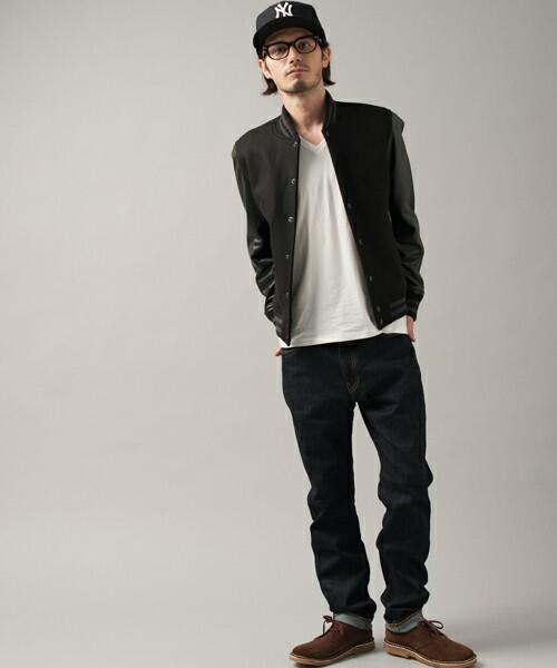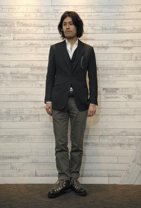 黒のJKTに白シャツ、カーキのチノパン、足元はマウンテンブーツを合わせて。 pic.twitter.com/DRVlqoKlBz