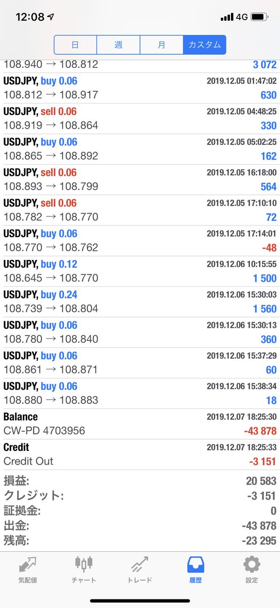 12/2〜12/6の結果ですが、 【+20,583円】でした!10万円の資金にて、この成績は、やはり本当に優秀なEAだと思います。