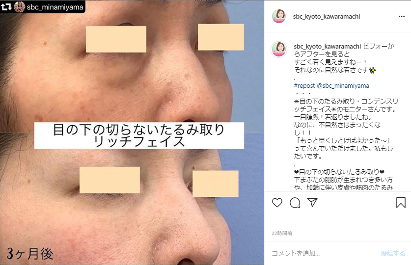 #モニター募集中 の為なのか 『#目の下の切らないたるみ取り』と『#コンデンスリッチフェイス』 をセットで受けられる方が多いようです。 というか、セットで受けることをお勧めしたい施術なんですよね。 ちょっとリプツリーに軽く解説してみますね